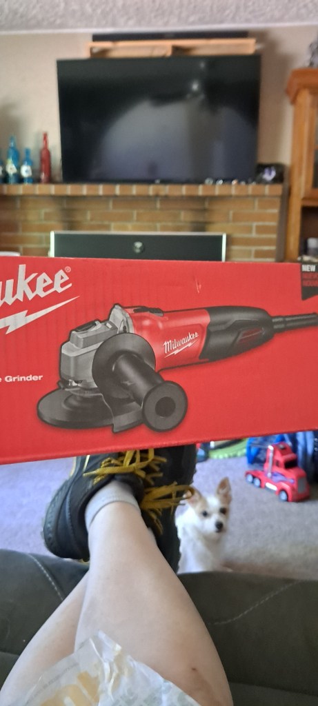 While working on our ambulance conversion, Tara burned out our grinder. Naturally, she upgraded when she bought the new one.